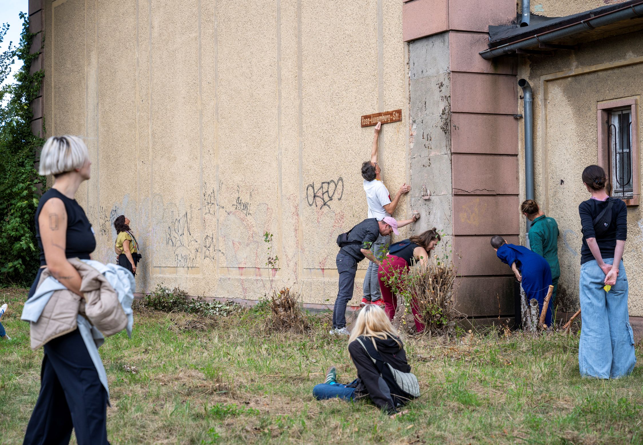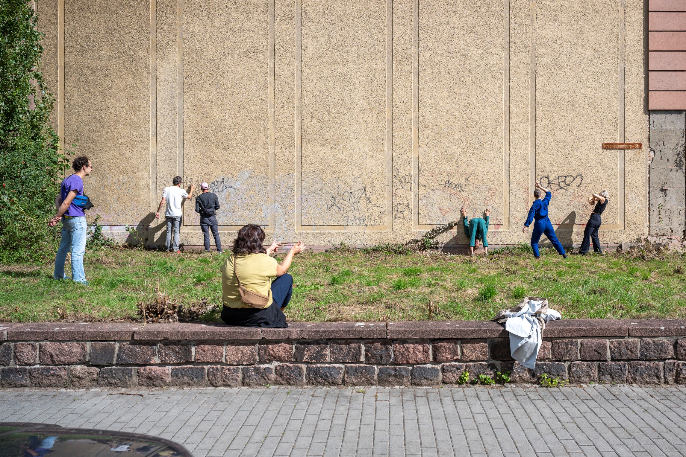 In einem bewegten Dialog mit dem Ort wurden wir Teil der brachliegenden Leerstelle in der Stadt, hinterließen flüchtige Spuren, eigneten uns multisensorisch und spielerisch den Raum an und erforschten dadurch Wolfens Möglichkeitsräume.