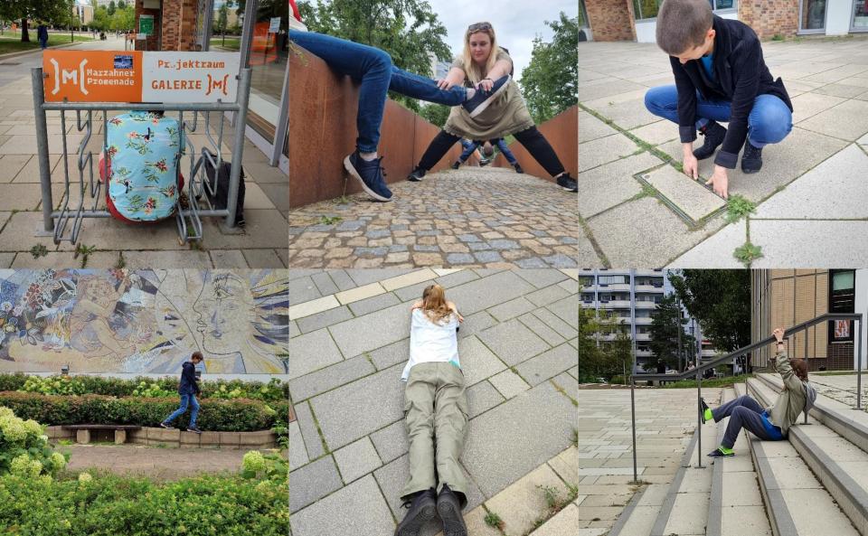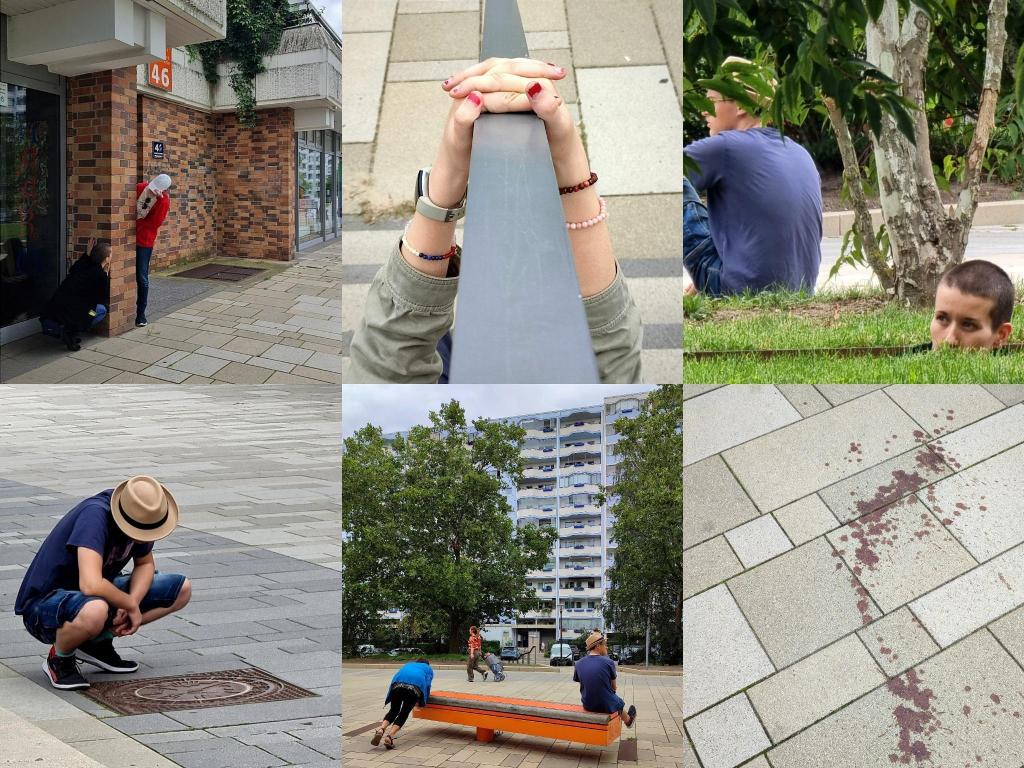 Wortlos schreiben sich unsere Körper in die Stadt hinein, besetzen Leerstellen, begehen Zeilenumbrüche, verfolgen Linien entlang der Plattenbau-Architektur, überformen den Raum, spielen mit An- und Abwesenheit und bilden so das A und O der marzahner Stadt-Textur.